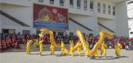 Tiếng trầm trồ thán phục lan khắp đám đông khi năm mươi tám sư Ni truyền thừa Drukpa tại tự Druk Amitabha Moutain (Druk Gawa Khilwa) biểu diễn điệu múa cờ với những động tác tay uyển chuyển cùng những cú đá...
