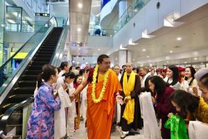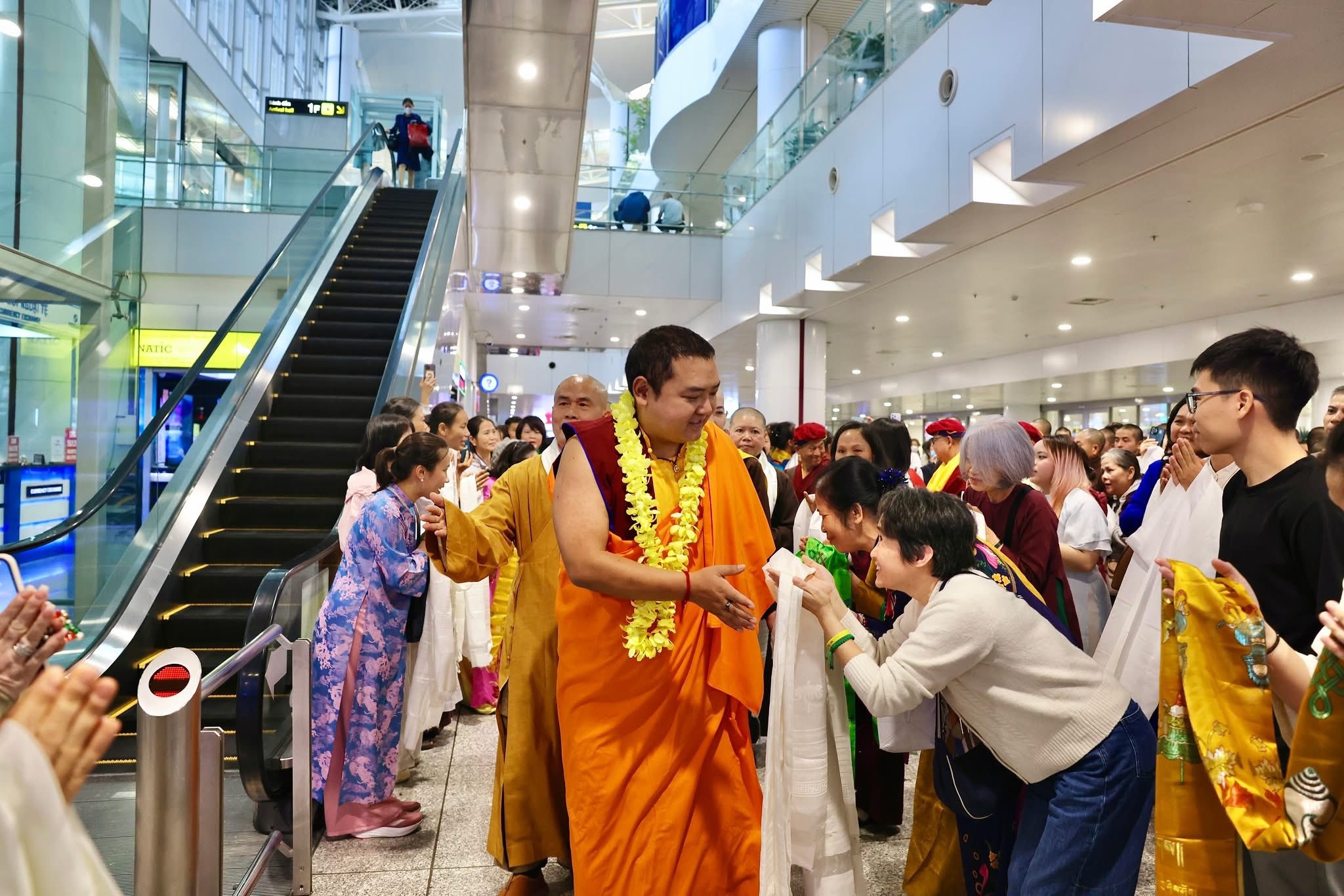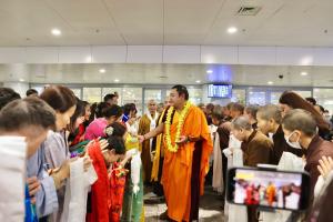 Reception of His Eminence Gyalwa Dokhampa at Noi Bai International Airport on December 12, 2025. His Eminence will be visiting for about one month, holding retreat, grand prayers, initiations, teachings across Viet Nam.