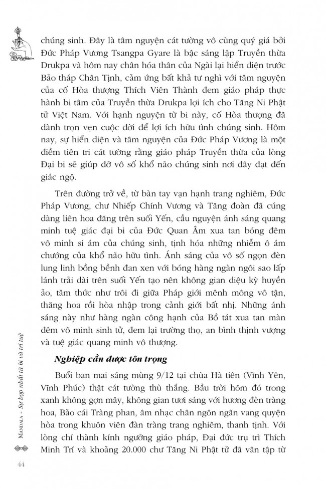 Drukpa Việt Nam xin chia sẻ đến quý vị Tóm tắt nội dung chuyến viếng thăm Việt Nam lần đầu tiên của Đức Pháp Vương Gyalwang Drukpa vào năm 2007 (trích dẫn từ ấn phẩm Mandala - sự hợp nhất Từ bi và trí tuệ theo quan kiến Kim cương thừa), do Drukpa Việt Nam biên tập và phát hành.