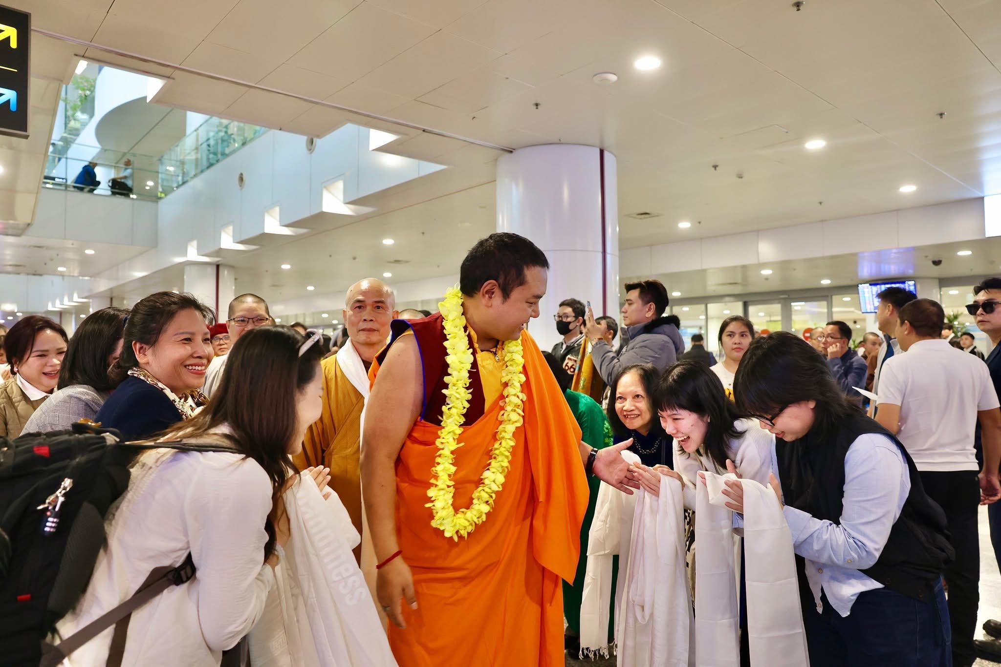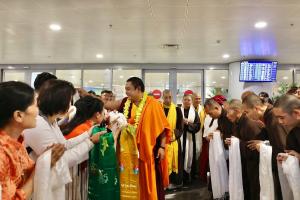 Reception of His Eminence Gyalwa Dokhampa at Noi Bai International Airport on December 12, 2025. His Eminence will be visiting for about one month, holding retreat, grand prayers, initiations, teachings across Viet Nam.