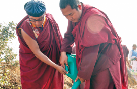 Lễ đúc đồng tôn tượng Phật Liên Hoa Sinh bằng chất liệu đồng đỏ, có chiều cao 1,3 mét, trọng lượng nặng khoảng 2 tấn, chế tác theo kiến trúc nghệ...