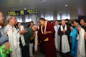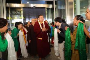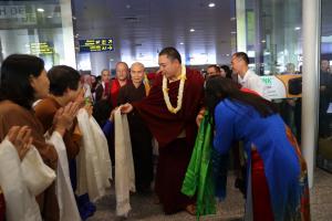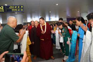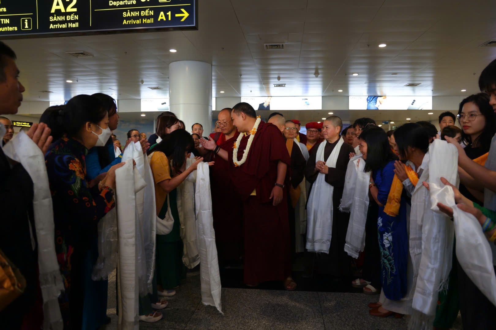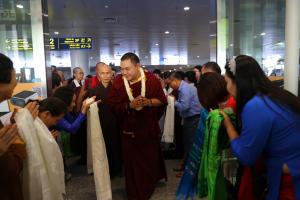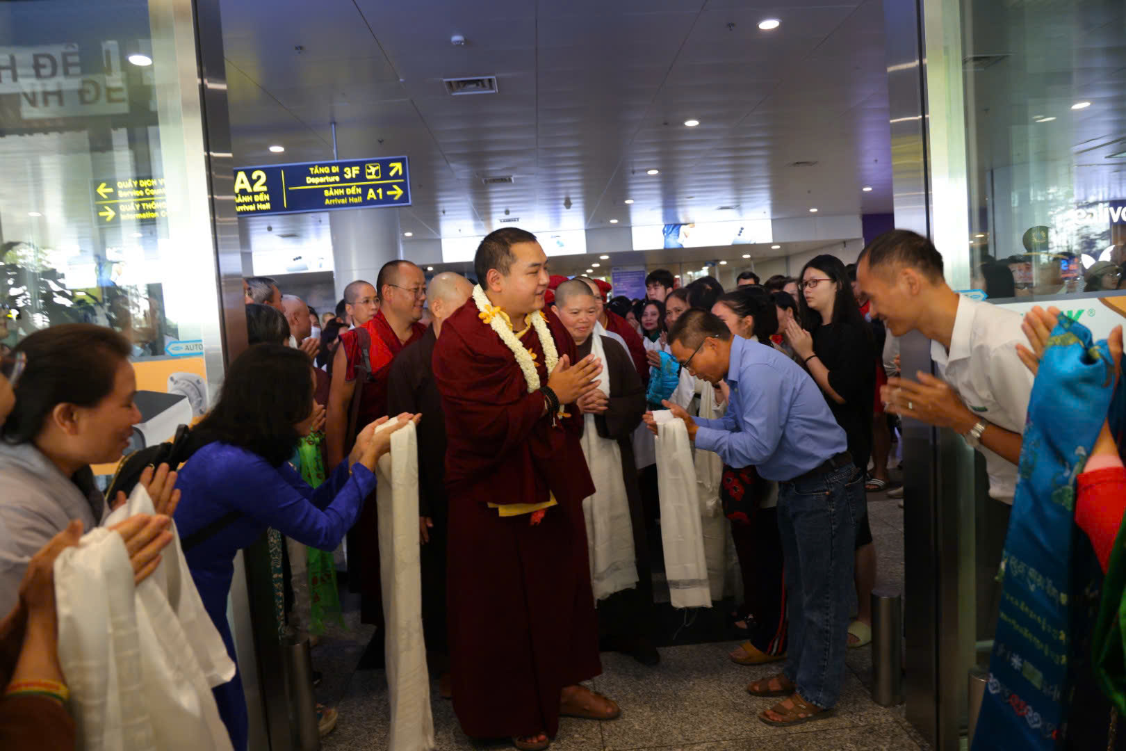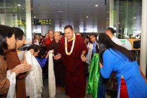 Reception of His Eminence Gyalwa Dokhampa at Noi Bai International Airport. His Eminence will be visiting for 3 weeks, holding retreat, grand prayers, initiations, teachings across the North of Viet Nam.