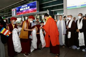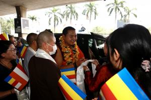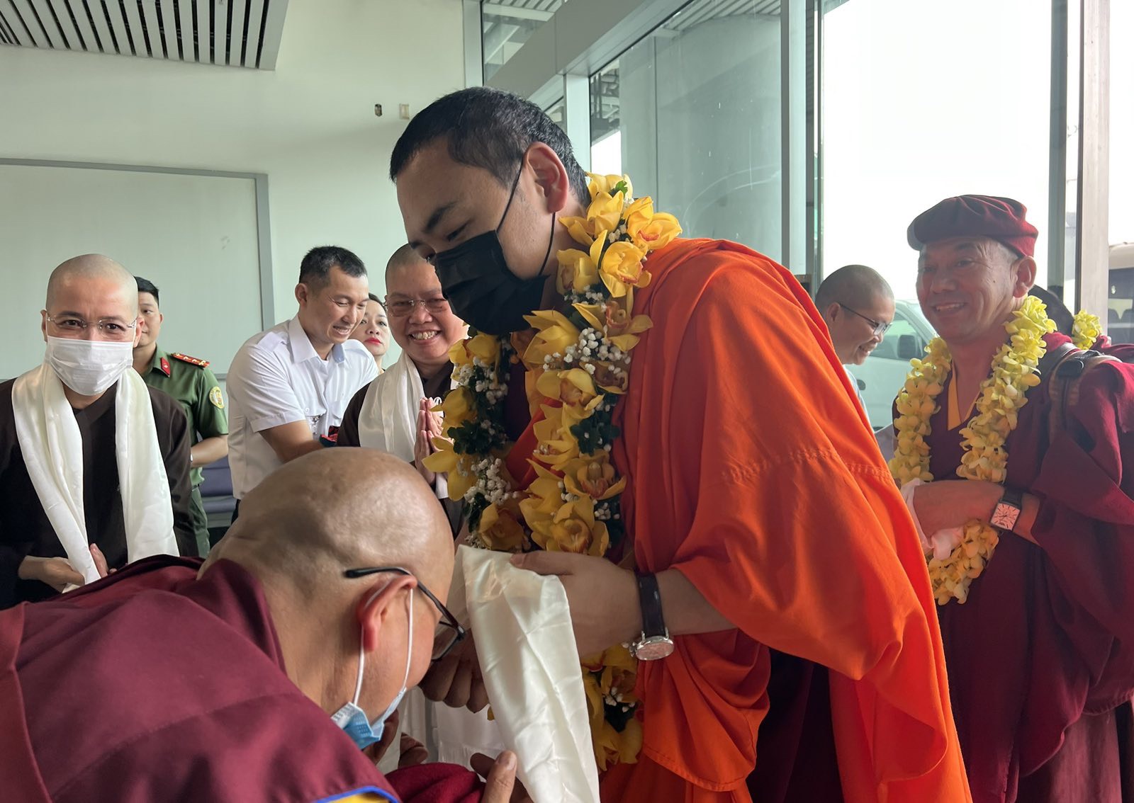 Reception of His Eminence Gyalwa Dokhampa and His Eminence Khamtak Rinpoche at Tan Son Nhat airport in Ho Chi Minh City on March 10, 2023.