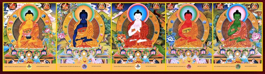Chân ngôn bí mật “OM MANI PADME HUNG” là hiện thân tất cả năng lực từ bi, trí tuệ và công hạnh của đức Quan Âm tôn quý, ngài chính là hiện thân bi mẫn của tất cả chư Phật. Chữ chủng tử “OM”, sắc trắng sinh ra từ sự hiển bày của năm trí tuệ Phật, là chủng tử hợp nhất tất cả phẩm hạnh và là tinh túy Thiền định Ba la mật. Chữ này tịnh hóa tất cả phiền não của sự kiêu ngạo, có thể giải thoát được sự đau khổ của chư Thiên là cái chết và sự đọa lạc. Những sự đau khổ trong cõi chư Thiên bất khả phân với thân và công hạnh của Shatakratu, Đức Phật hiện thân cứu độ cõi chư Thiên. Chữ OM là sự phản chiếu của trí tuệ bình đẳng, xuất hiện rất sống động dẫn dắt sáu đạo chúng sinh đến Nam phương Tịnh độ, cảnh giới vinh quang và khiến họ thành tựu được sắc thân Phật Bảo Sinh.