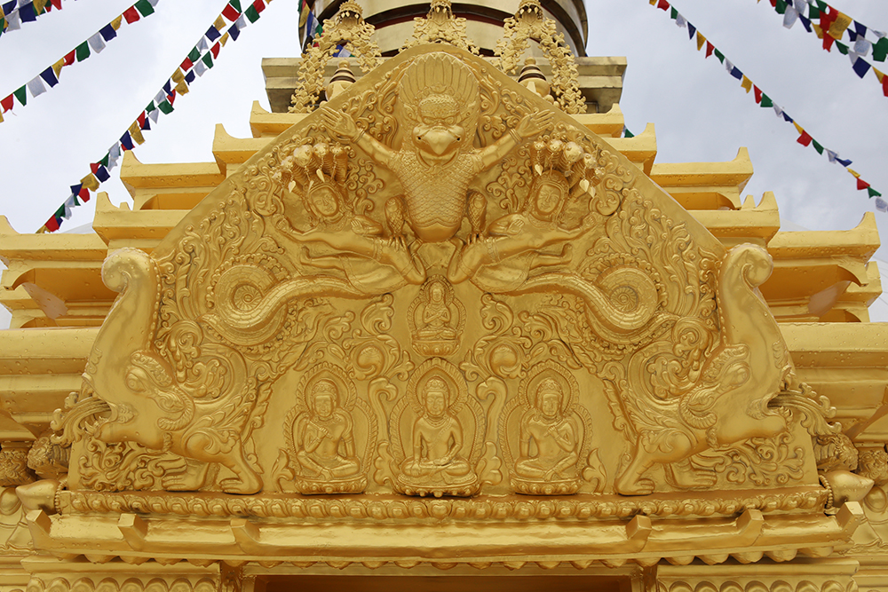 Tọa lạc dưới chân núi Thạch Bàn, Đại Bảo Tháp Mandala Tây Thiên được đích thân Đức Pháp Vương Gyalwang Drukpa lựa chọn địa điểm, thiết kế, xây dựng, gia trì yểm tâm theo đúng giáo lý của Đức Phật về Mandala. Đây là sự hợp nhất của Từ bi và Trí tuệ, sự tái hiện Vũ trụ tương ứng với tỷ lệ, sắp xếp đối xứng của các luân xa, kinh mạch trên Thân vi tế của Đức Phật toàn tri. Vì tính linh thiêng này, Đại Bảo Tháp không chỉ biểu trưng cho sự hiện thân của Đức Phật ngay chốn nhân gian mà còn là nơi vân tập của hải hội chư Phật, chư Bồ tát, Hộ pháp, Thiện thần, Không Hành Mẫu,… một Mandala trung tâm vũ trụ hội tụ năng lượng tinh túy của trời đất, ban nguồn ân phúc gia trì từ Tây Thiên tỏa khắp các vùng miền tổ quốc.