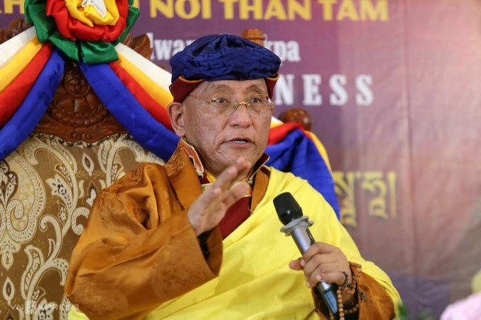 Đức Gyalwang Drukpa tại tọa đàm về sống hạnh phúc, ngày 10/2. Ảnh: Gia Chính