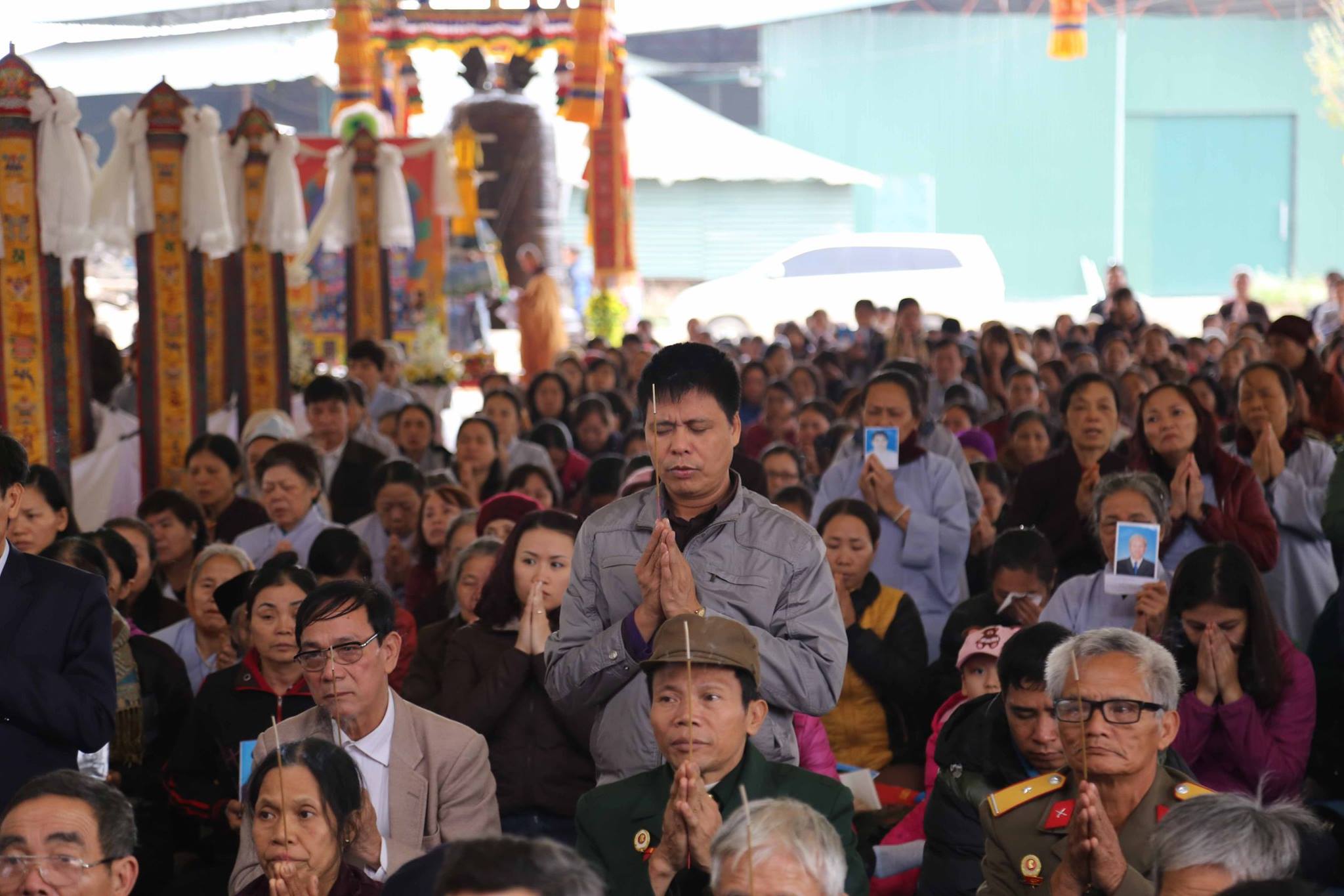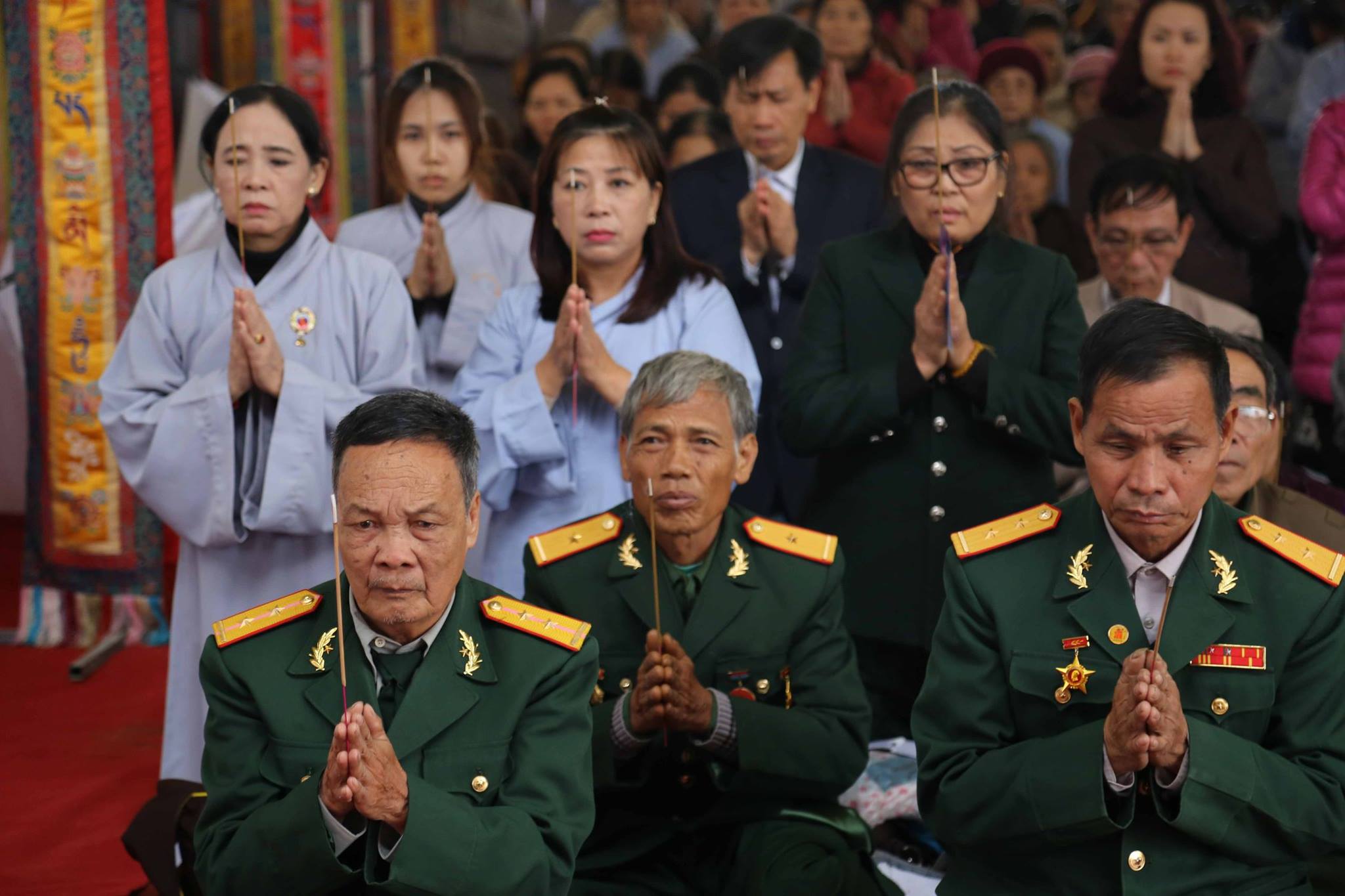 Chiếm hơn nửa trong số gần 2.500 người dân về Đại bảo tháp Tây Thiên dự lễ là nhiều đoàn cựu binh cao tuổi đến từ Hải Phòng, Nam Định, Vĩnh Phúc, đặc biệt có Hội chiến sĩ Thành cổ Quảng Trị. Họ đến từ sáng sớm, tất cả trong trang phục màu xanh áo lính, sáng ngời khí chất tuổi trẻ năm xưa, bất kể giờ đây tóc ai cũng đều bạc trắng. Các cựu binh trang trọng gắn trên vai, nơi ngực áo những bộ quân hàm và huy hiệu, xúc động hơn họ luôn mang theo trong tâm trí hình ảnh đồng đội hy sinh.
