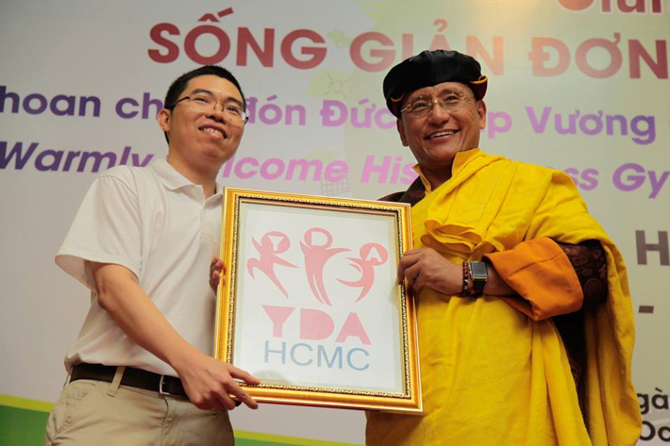 (Đức Pháp Vương Gyalwang Drukpa và Đại diện Câu lạc bộ Tuổi trẻ Thăng Long YDA TP.HCM)