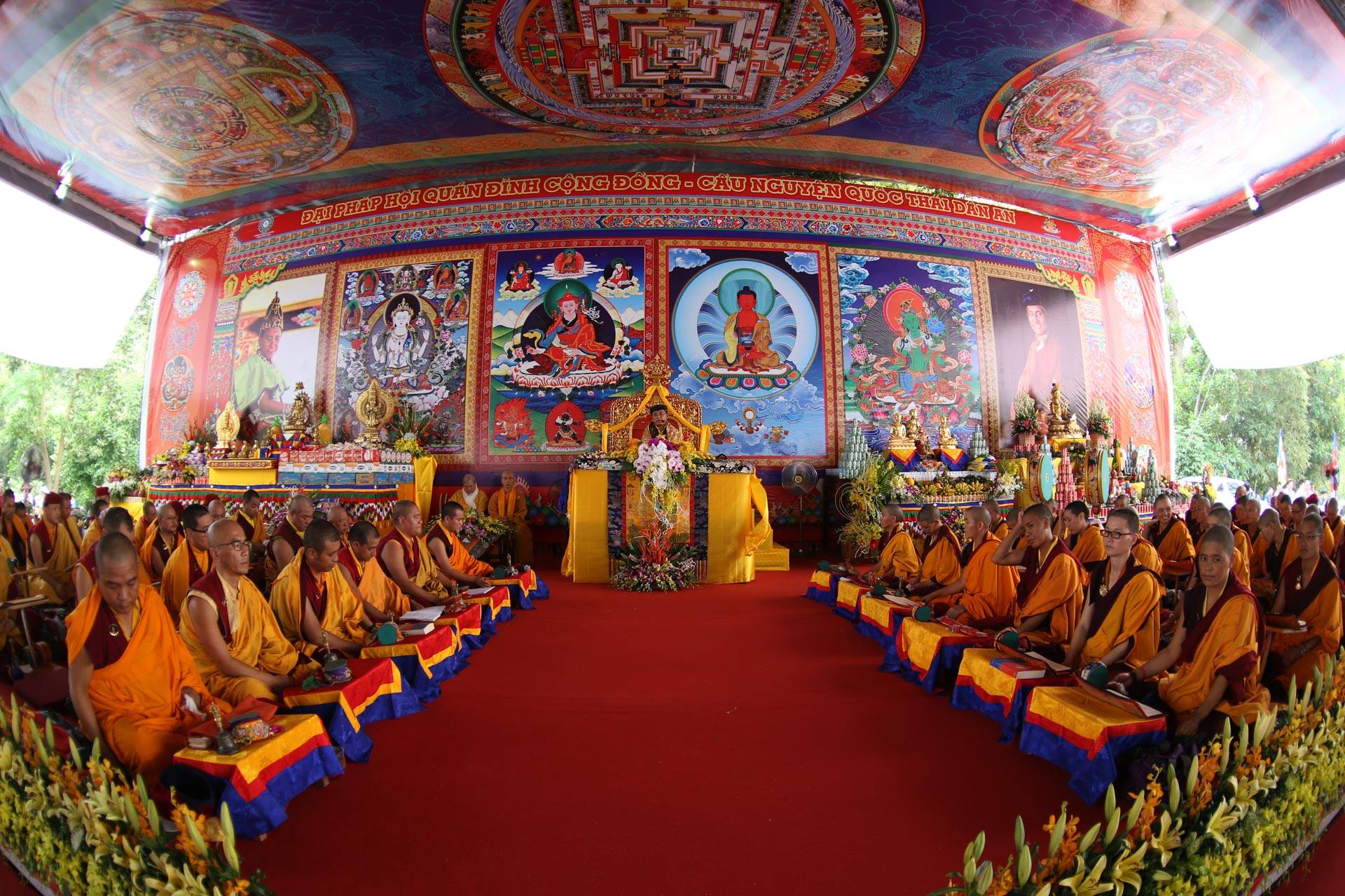 His Holiness visits Hoang Long monastery, Phu Tho province. The program includes public teaching, burnt offerings prayer, initiation of Avalokiteshvara and Green Tara and Mahakala dance.