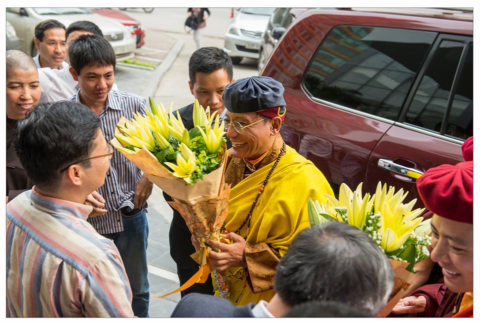 Đức Pháp Vương: Ấn tượng của tôi với đất nước Việt Nam là sự đón tiếp từ Phật tử. Ngay khi đặt chân đến sân bay tôi đã nhận được sự đón tiếp rất nồng ấm, thể hiện qua nụ cười của họ, cách họ gọi tên tôi. Tôi nói như thế không có nghĩa là các quốc gia khác không có sự nồng ấm đó. Nhưng ở Việt Nam, tôi cảm thấy được điều đó nhiều hơn, rõ nét hơn.
