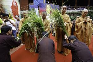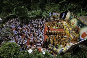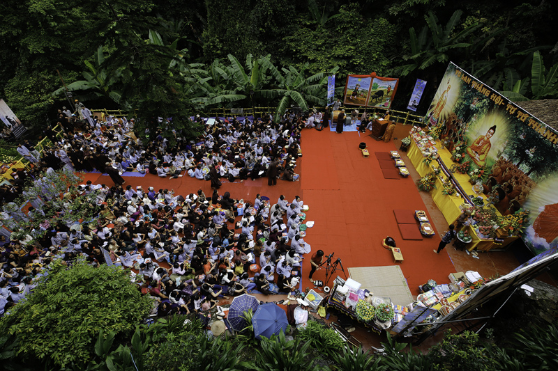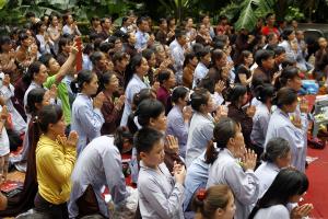 Ngày 16/8 - Hơn 1.500 Phật tử không quản ngại đường núi hiểm trở, dưới trời mưa không ngớt đã vân tập tại Tịnh thất Tây Thiên dự lễ Vu Lan báo hiếu cha mẹ.